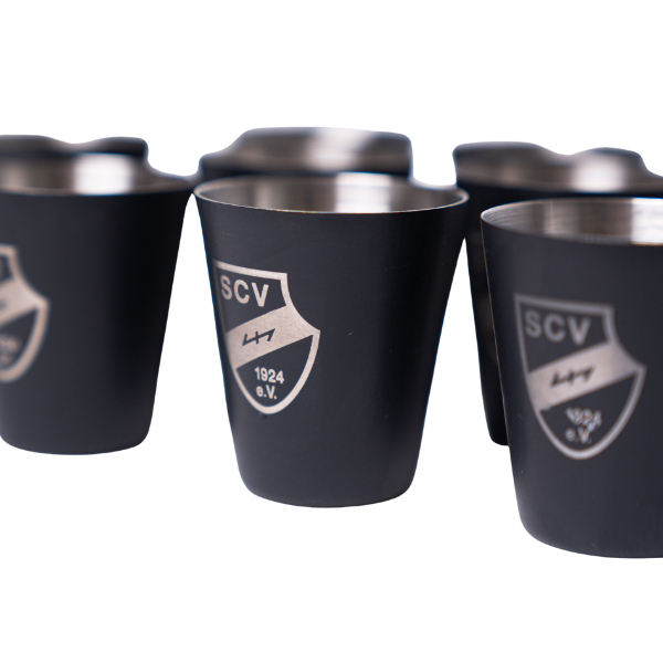 Hochwertiger Shotbecher aus Edelstahl mit SCV Logo Gravur.